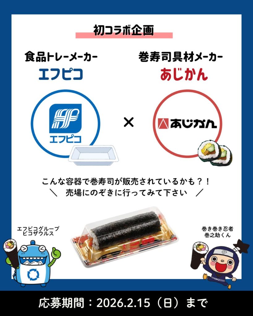 食品容器の総合メーカー エフピコ(@fpco.info) と、巻寿司文化を広める あじかんMAKIZUSHI倶楽部(@makizushi.club) が、Instagramで楽しいフォトキャンペーンを同時開催します📸
