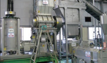 よくかわかしたチップを、ねつでとかします。 そして、小さなつぶの形にします。
